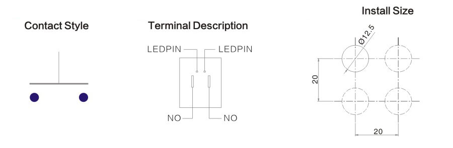 具有兩個端子的雙斷電慢動觸頭開關個別產品可定制Y型常閉開關,詳見產品說明 | ||