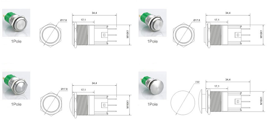 小型防水金屬按鈕開關