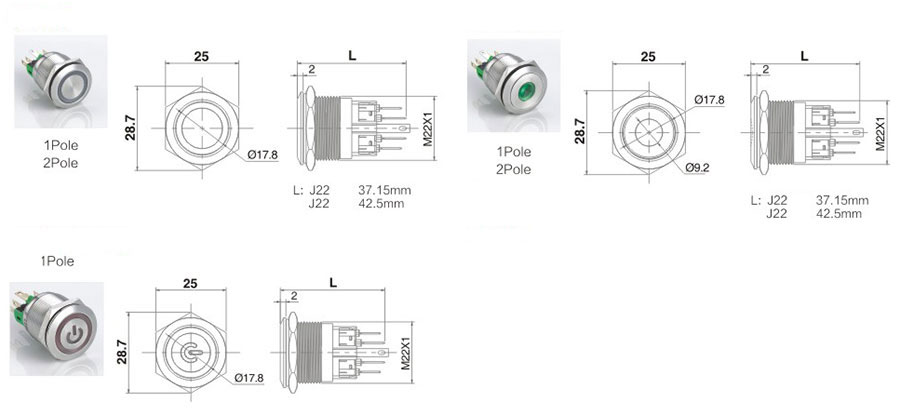 | 額定電壓 | 3V,6V,12V,24V,36V,110V,220VAC/DC |
