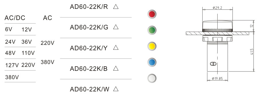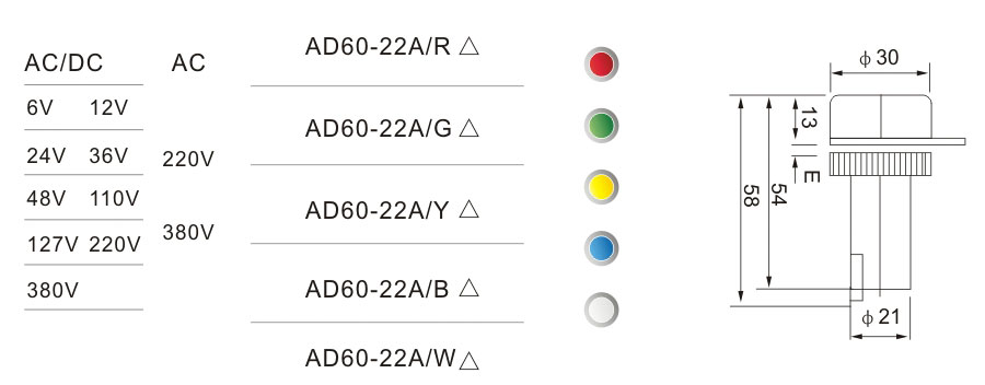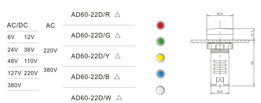 6V 12V 24V 36V 48V 110V 127V 220V 380V |