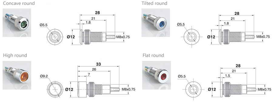 8mm金屬信號燈