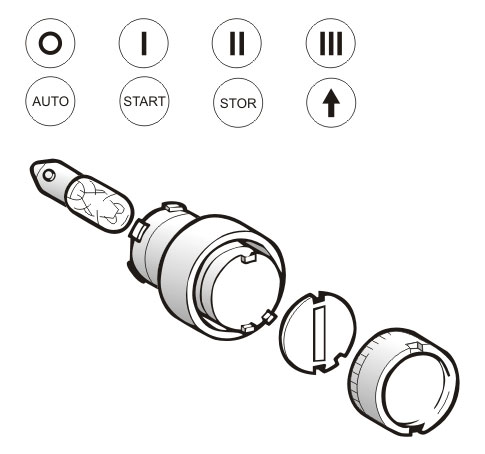 3個彈簧復位按鈕 1沖洗白色(黑色箭頭) 1沖紅色 1沖洗黑色(白色箭頭) IP40/54 |