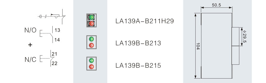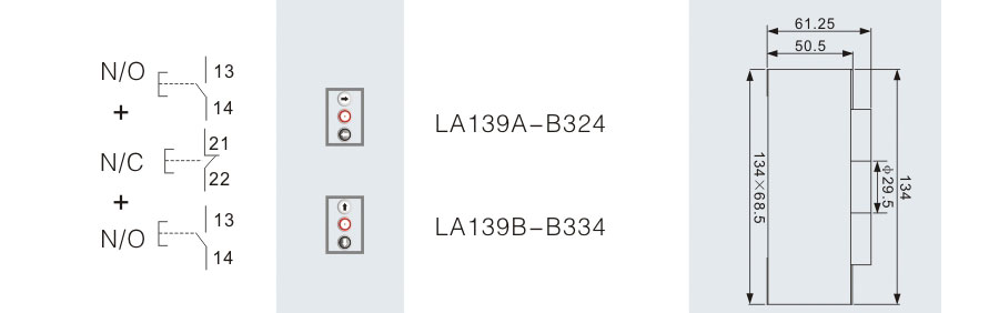 觸點模塊 1 : 1常開 2 : 1常閉 3 : 2常開 4 : 2常閉 5: 1常開+1常閉 |