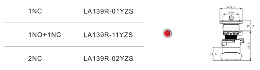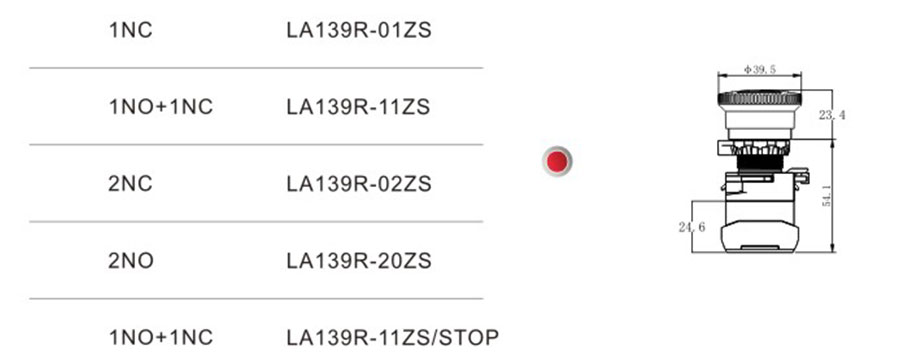 觸點模塊 10 = 1NO 01 = 1NC 11 = 1NO+1NC 20 = 2NO 21 = 2NO+1NC 12 = 1NO+2NC 30 = 3NO 03 = 3NC |