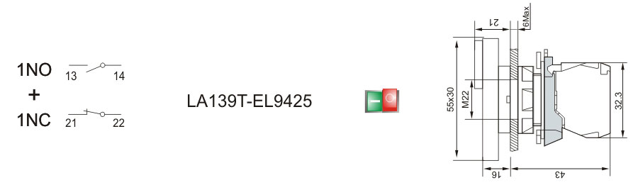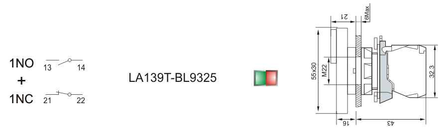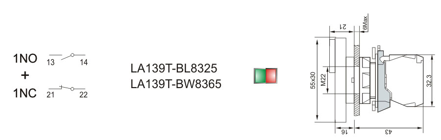 觸點模塊 1 : 1NO 2 : 1NC 3 : 2NO 4 : 2NC 5: 1N0+1NC |