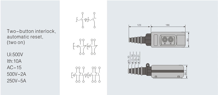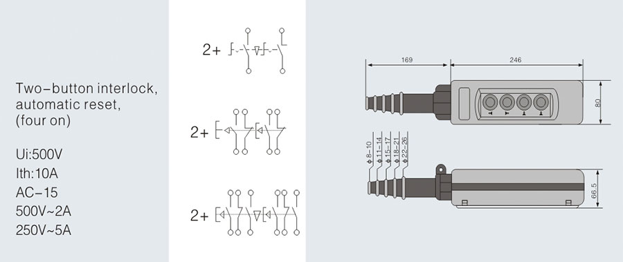 起重機控制開關適用于露天,雨雪,灰塵和潮濕的環境。 如電動葫蘆,露天輸送帶,電氣設備的遙控